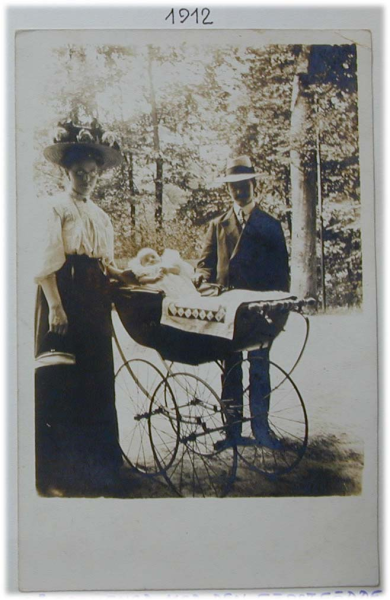 Het echtpaar Korfmaker met de eerstgeborene Gerrit-Jan in de kinderwagen. Foto gedateerd 1912. Zie ook de archiefnummers 2024-07-005 t/m 2024-07-014, het artikel van Eric Bor met nummer BK-2024-04 en stamboomonderzoek door Ton Kalkman IS2024-001. |