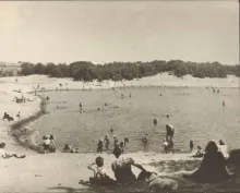 Een zwembad in de Vecht | BK-2022-35 | Korte geschiedenis van het openluchtzwembad dat van 1929 tot 1953 bij Muiden in de Vecht lag. Auteur: Ayla Blüm |