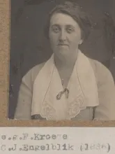 Engelblik, Catarinna J. | PBM1192 | Catarinna Jansje (Cato) Engelblik is geboren op 17 april 1886 in Amsterdam als dochter van barbier Willem M. Engelblik en Johanna H.E. Pfersich. Op 11 juni 1914 trouwde zij met Frederik Kroeze (PBM2660) Er waren (minstens) twee zonen: de latere kunstschilder en violist Theo(door) *6-12-1916 (zie B... |