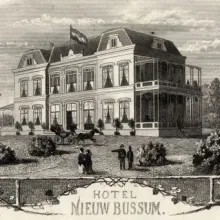 Nieuwe 's-Gravelandseweg 2 | BK-2025-25 | Hotel Nieuw Bussum, luxueus logement bij het station Het hotel dat Piet Loman in 1874 voor 16.000 gulden liet bouwen bij het nieuwe station Naarden-Bussum op de lijn Amsterdam-Amersfoort moest het gezicht worden van het nieuwe Bussum dat de investeerders Biegel en Loman aan de vrijwel onbewoonde w... |